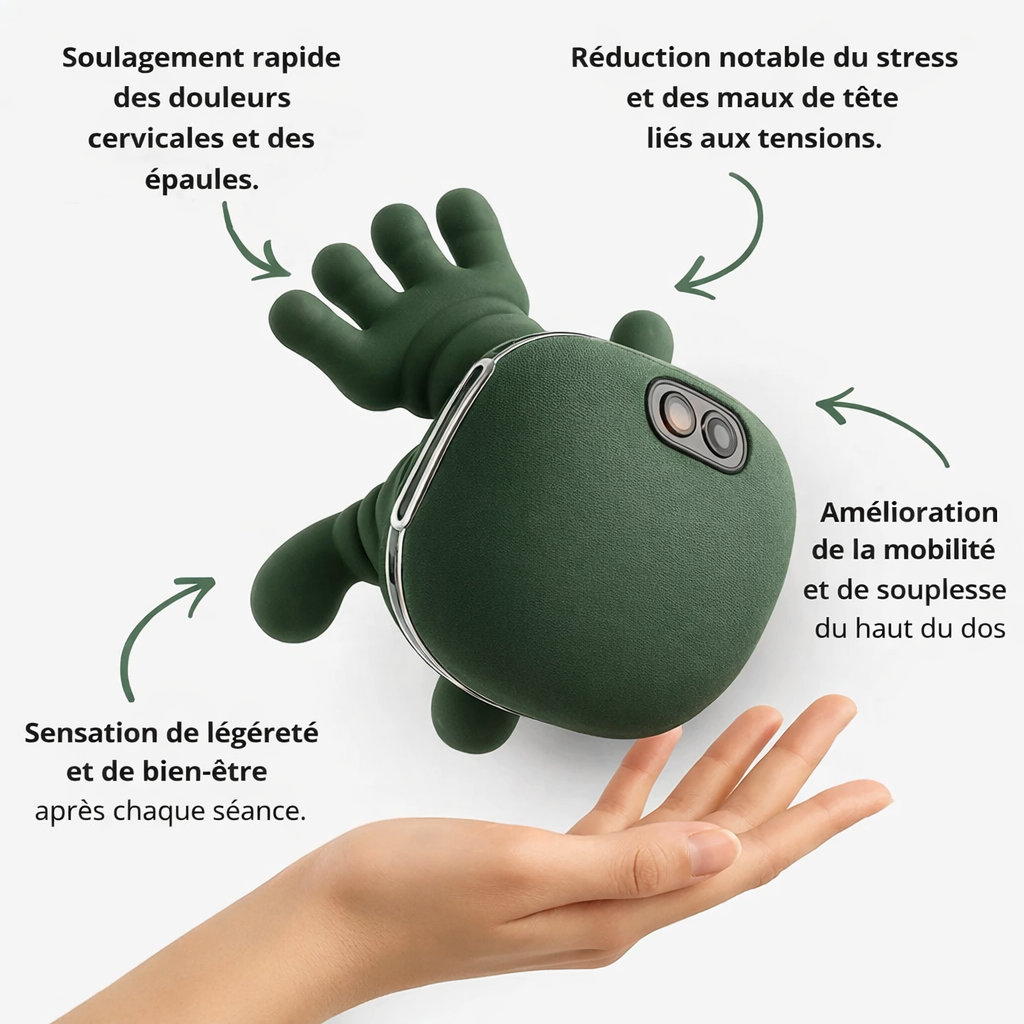 Dès les premières utilisations, le masseur agit en profondeur sur les zones de tension du cou, des épaules et du haut du dos.